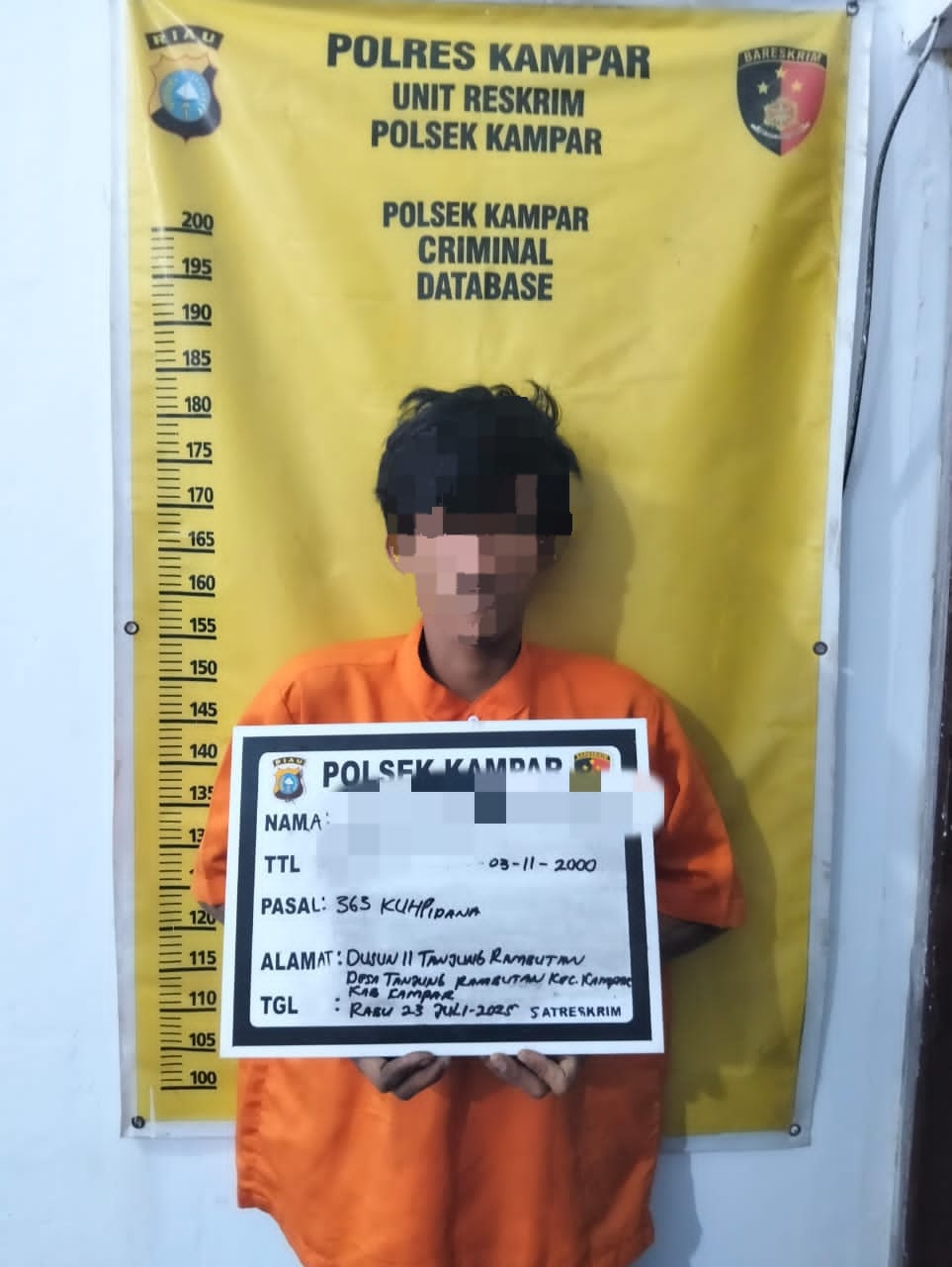 KAMPAR, MisteriBicara.com – Jajaran Polsek Kampar berhasil mengamankan JE (25) Warga Desa Tanjung Rambutan, Kecamatan Kampar, Kabupaten Kampar, Rabu (23/7/2025) sekira pukul 18.00 WIb.