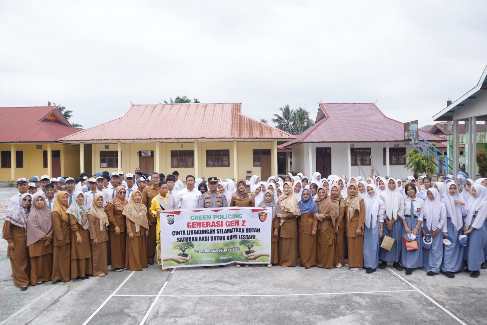 Kampar, MisteriBicara.com – Polres Kampar terus giat mensosialisasikan program Green Policing dari Kapolda Riau untuk menanamkan kesadaran akan pentingnya pelestarian lingkungan sejak dini. Senin (28/7/2025), Kasat Intelkam Polres Kampar, AKP Josrizal, S.H., dan Kasat Binmas Polres Kampar, AKP Marupa Sibarani, S.H., M.H., melaksanakan kegiatan sosialisasi Green Policing dan penanaman pohon di SMA Negeri 1 Salo, Kecamatan Salo, Kabupaten Kampar. Kegiatan yang berlangsung sejak pukul 07.15 WIB ini dihadiri oleh Kepala Sekolah SMA N 1 Salo, Efridanur, S.Pd., M.Pd., para guru, dan seluruh siswa-siswi SMA N 1 Salo.