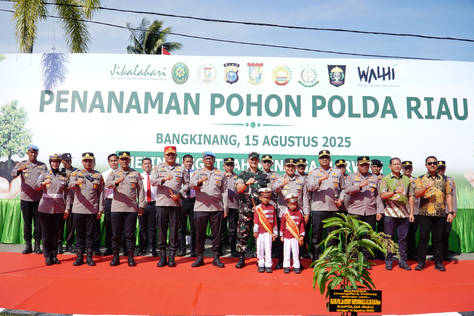 Di akhir kegiatan, Kapolda Riau memberikan bibit pohon kepada Kapolres Kampar sebagai simbol dukungan terhadap program penghijauan dan pelestarian lingkungan.