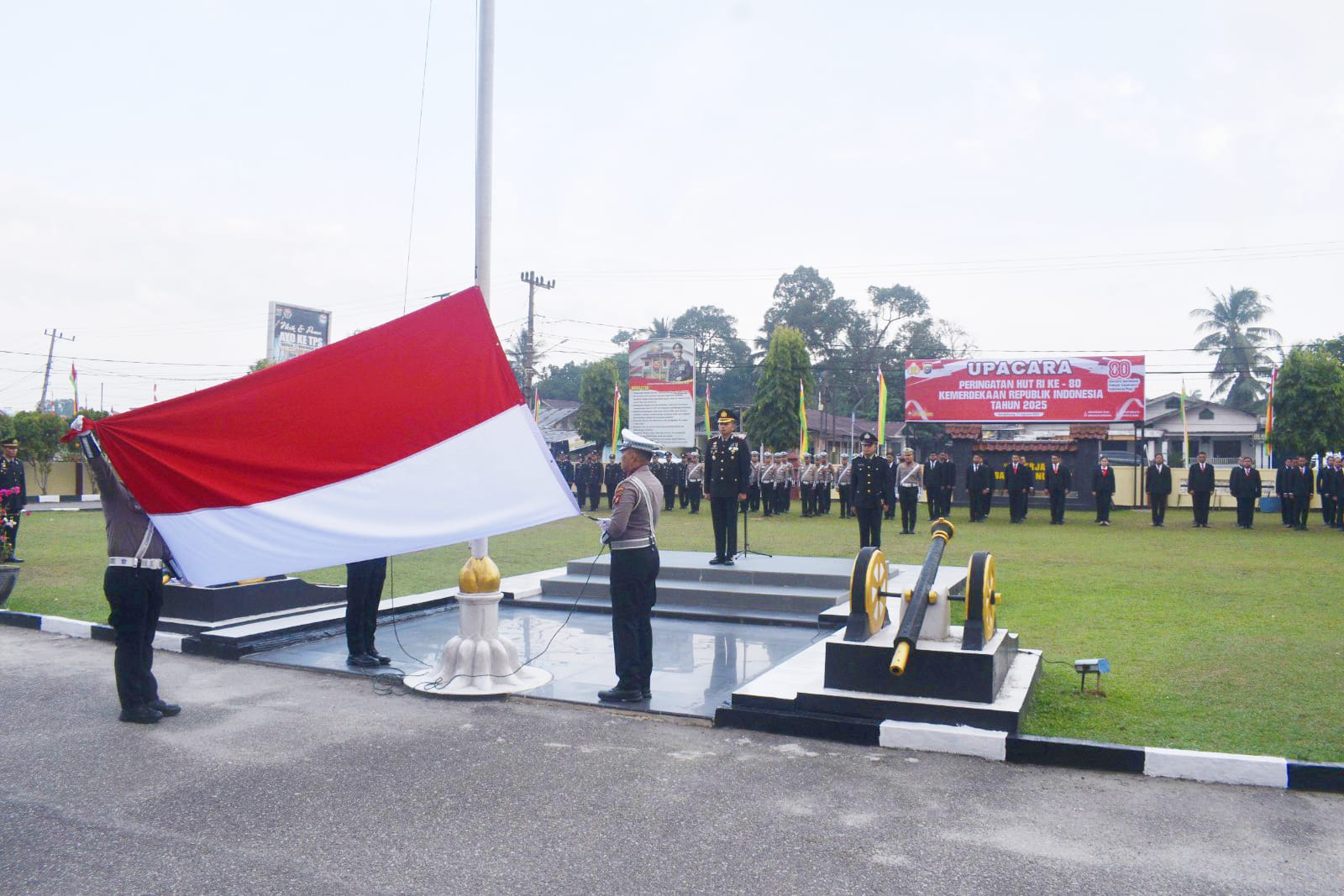 Polres Kampar Gelar Upacara Pengibaran Bendera Merah Putih Penuh Khidmat di HUT RI ke-80