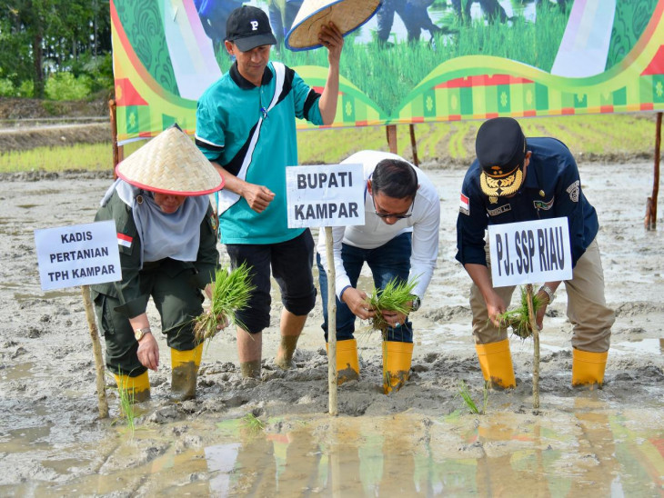 Pemkab Kampar Gelar Gerakan Tanam Padi Sawah dan Pengukuhan UPJA di Kecamatan Bangkinang