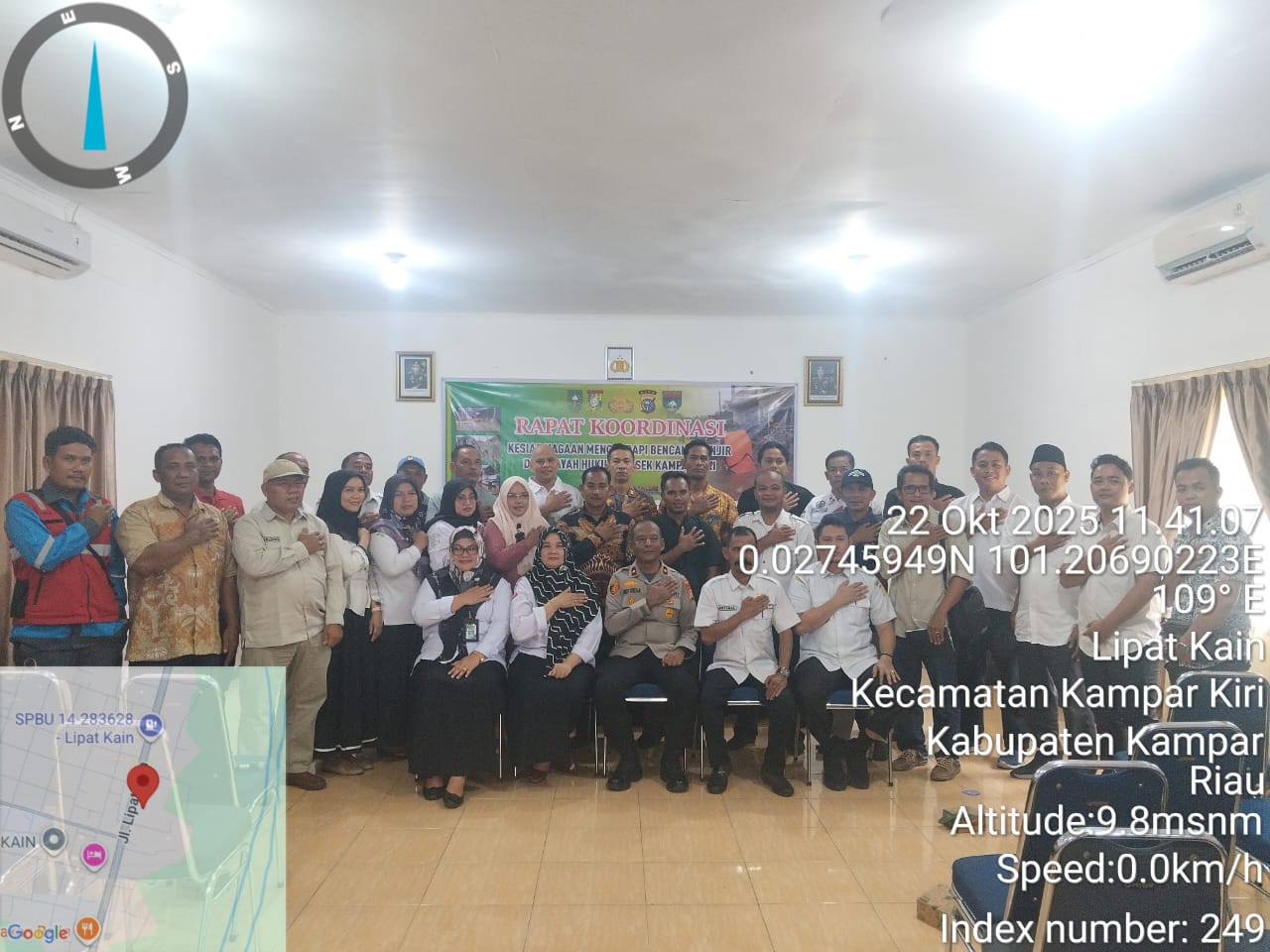 Kegiatan yang dilaksanakan di Aula Polsek Kampar Kiri Kelurahan Lipatkain Kec Kampar Kiri ini bertujuan untuk menyatukan langkah dan memperkuat koordinasi antara berbagai pihak dalam menghadapi potensi bencana banjir.