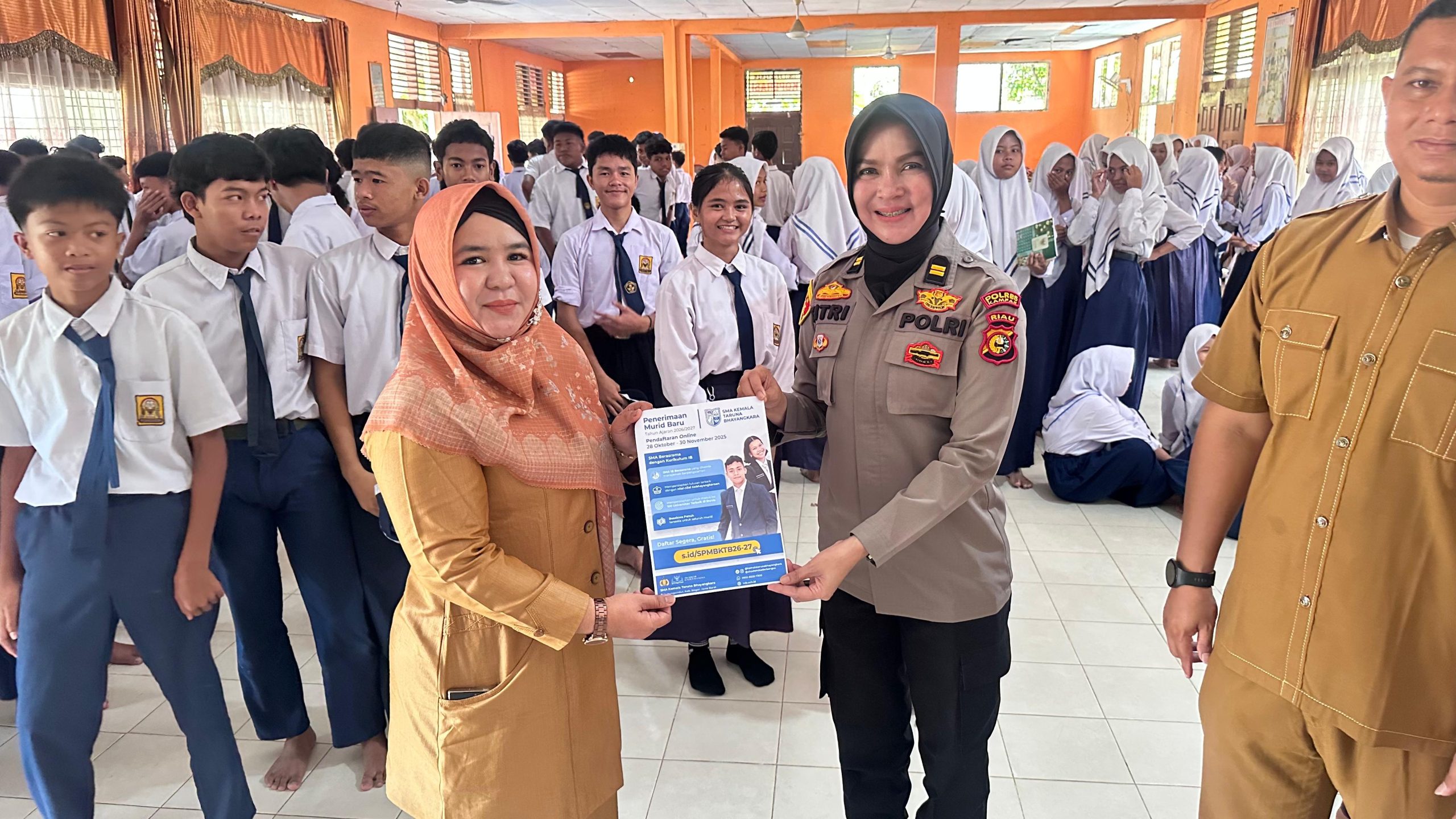 BANGKINANG KOTA – Polres Kampar gencar melakukan sosialisasi penerimaan peserta didik baru SMA Kemala Taruna Bhayangkara di wilayah Kec. Bangkinang Kota, Kab. Kampar pada Senin (03/11/2025),