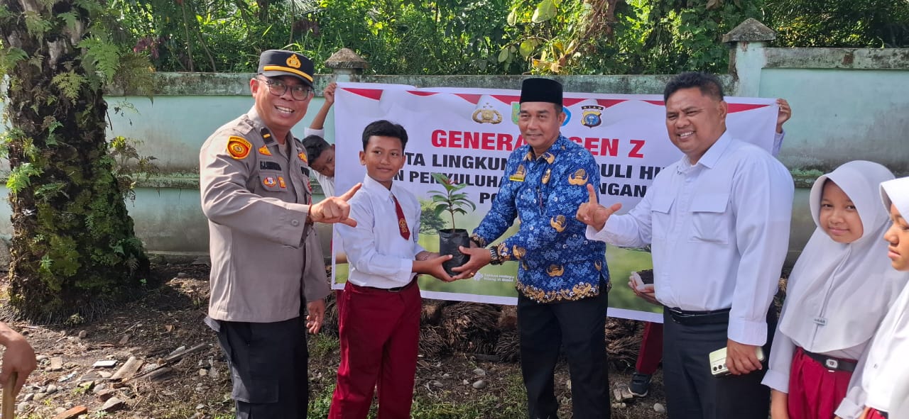 BANGKINANG, Misteribicara.com – Program Kapolda Riau tentang Green Policing terus bergulir, kali ini menyasar SDN 018 Bukit Sembilan, Kecamatan Bangkinang, Kabupaten Kampar. Pada Senin (17/11/2025), KBO Sat Intelkam Polres Kampar IPDA E.J. Sihombing beserta personel Sat Intelkam melaksanakan kegiatan sosialisasi Green Policing dan penanaman pohon di sekolah tersebut.