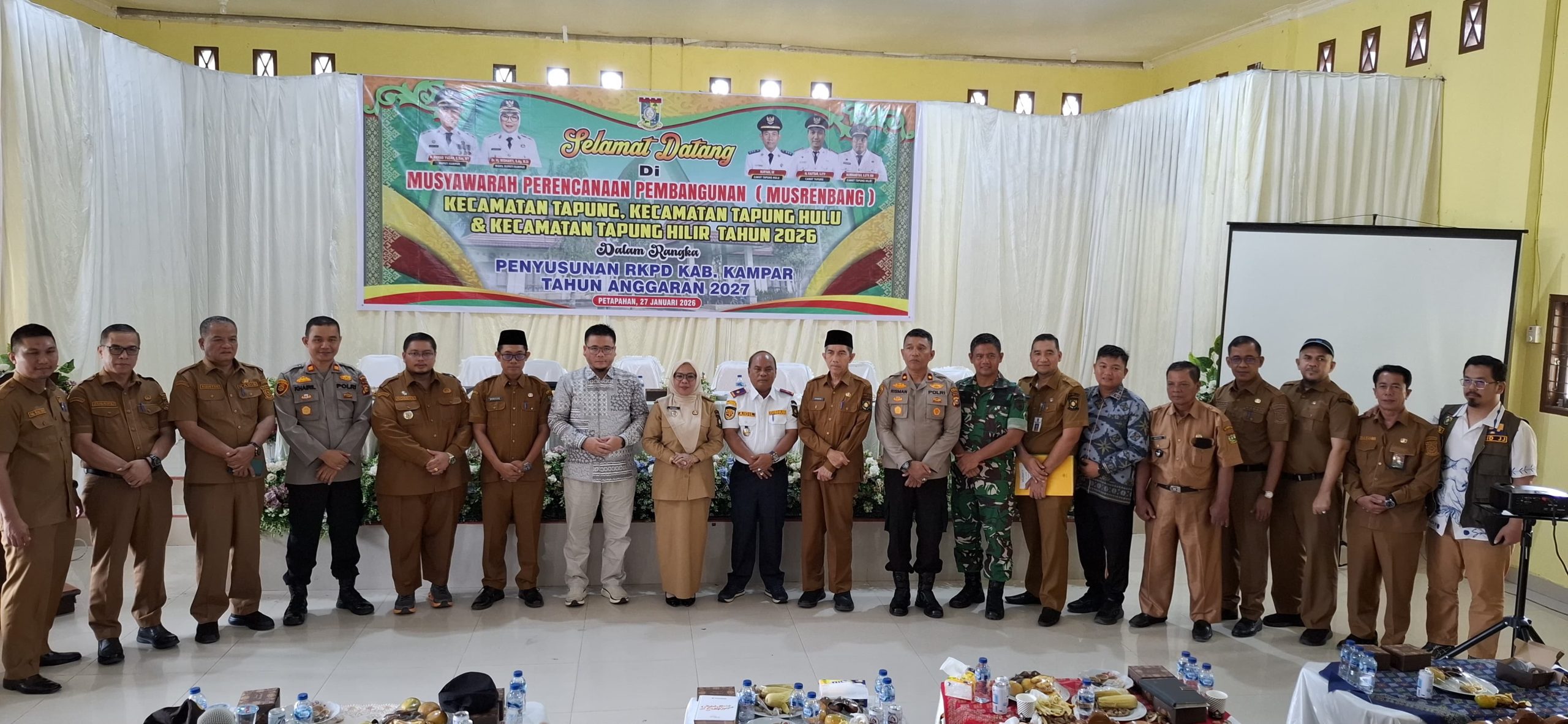 Tapung,Misteribicara.com – Pemerintah Kabupaten Kampar PP menggelar Musyawarah Perencanaan Pembangunan (Musrenbang) Kecamatan Daerah Pemilihan (Dapil) II dan III yang meliputi Kecamatan Tapung, Tapung Hulu, dan Tapung Hilir atau dikenal dengan kecamatan Tapung Raya. Kegiatan ini dipusatkan di Gedung Guru (Aula Persatuan Guru Republik Indonesia/PGRI) Desa Petapahan, Kecamatan Tapung, Selasa (27/1/2026).