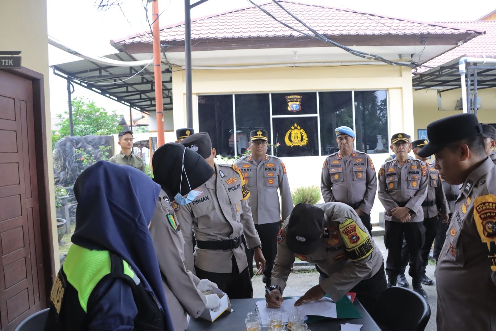 Kegiatan ini disaksikan langsung oleh Kapolres Kampar AKBP Boby Putra Ramadhan, didampingi Wakapolres Kampar Kompol Rizki Hidayat, dan Kasi Propam Iptu Nofrizal.