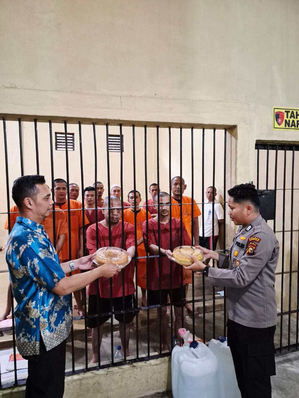Sebagai penutup kegiatan “Jumat Curhat”, Sattahti Polres Kampar berbagi “Jumat Berkah” berupa pemberian kue kepada para tahanan sebagai bentuk silaturahmi dan kepedulian.