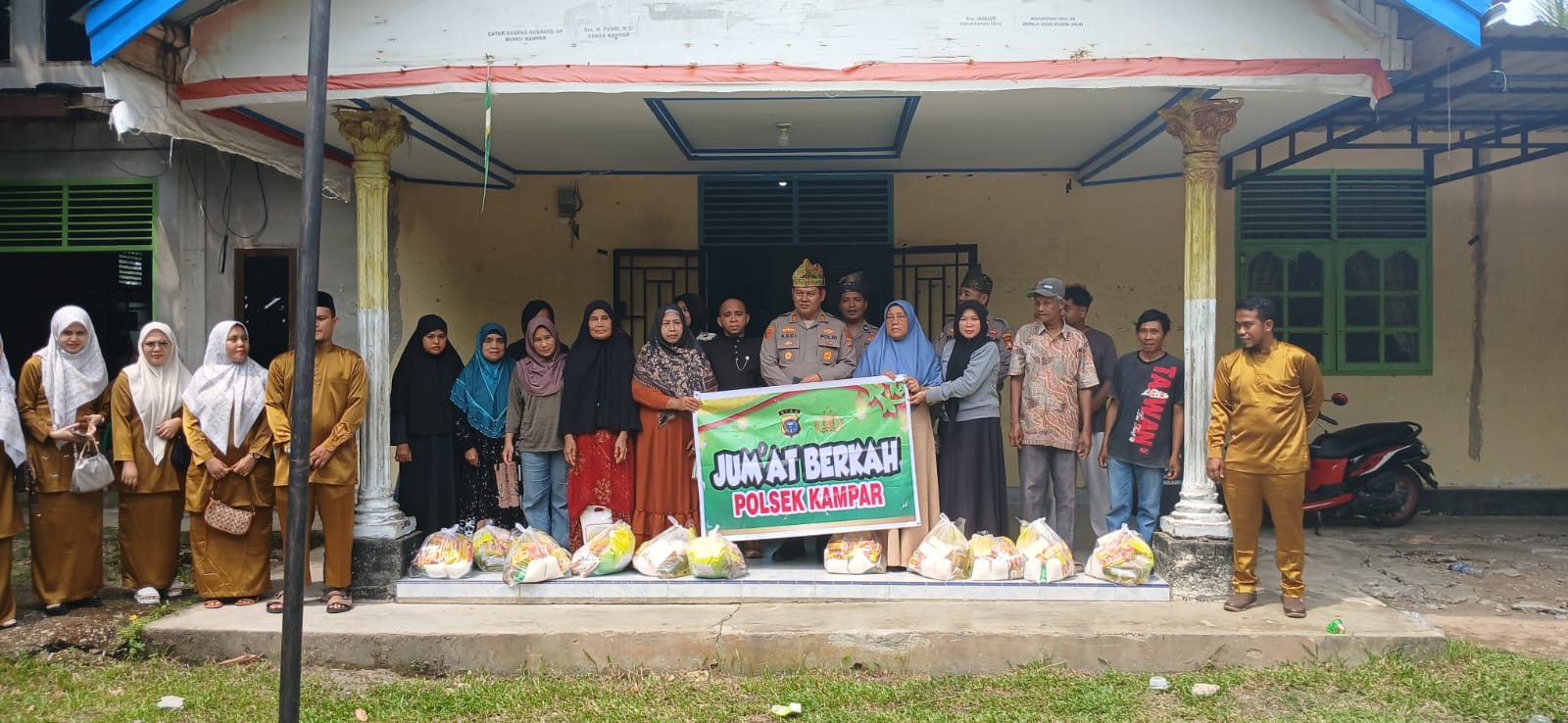 Kapolsek Kampar AKP Asdisyah Mursyid.SH menyampaikan bahwa kegiatan ini merupakan wujud silaturahmi dan kepedulian Polsek Kampar terhadap masyarakat kurang mampu. “Saya datang ke sini untuk bersilaturahmi, karena bersilaturahmi membuat kita sehat, umur panjang, dan nikmat sehat yang harus disyukuri. Hari Jumat ini merupakan hari yang barokah untuk berbagi rejeki yang bersumber dari hamba Allah. Semoga pemberian ini bermanfaat dan menjadi barokah dengan ketulusan dan niat baik kami.”
