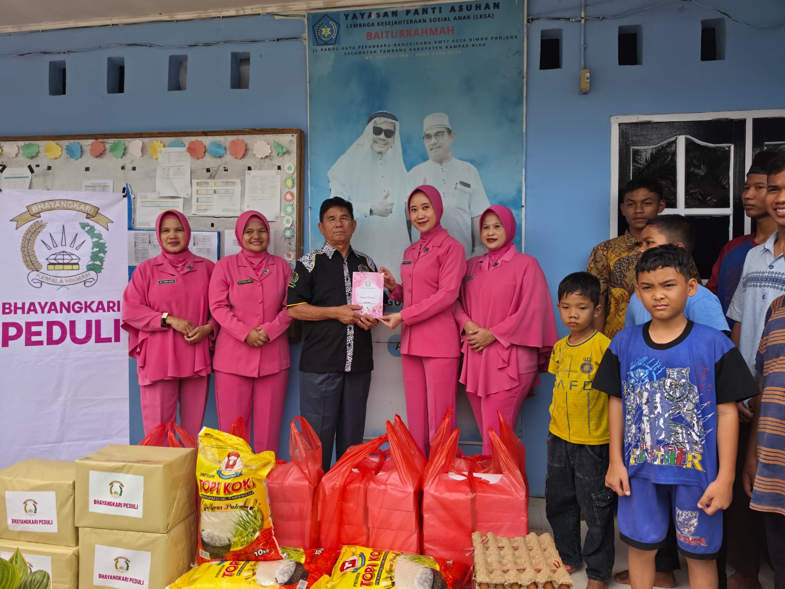 Menyalurkan bantuan sosial dari Ketua Bhayangkari cabang kampar Kiki Boby dengan memberikan bantuan kepada Panti Asuhan.