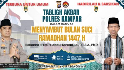 KAMPAR,Misteribicara.com – Polres Kampar mengajak seluruh masyarakat untuk menyambut bulan suci Ramadhan 1447 Hijriah…